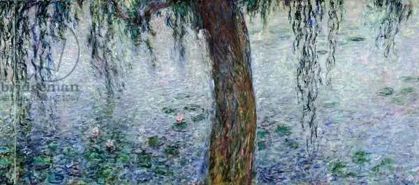 Musee de lOrangerie, Paris, France Monet painted picture Waterlilies: Morning with Weeping Willows, detail of the right section, 1915-26 in 1915-26. Prevailing color of this fine art print is green and its shape is long. This art piece is located in Musee de lOrangerie, Paris, France. This image is printed on demand - you can choose material, size and finishing.