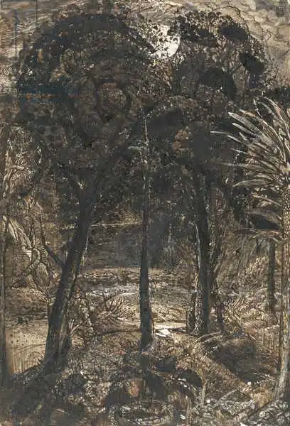 rocky landscape in Wales. He married a woman 14 years younger and they spent their honeymoon in Italy, where Palmer garnered inspiration. His best work comes from his later period. Often, he painted large watercolour paintings illustrating Milton’s poem L Allegro and Il Penseroso. Many of his works were burned after his death by his son.