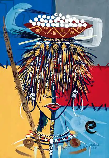 Perrin painted picture African Beauty 2 in 2005. Prevailing color of this fine art print is blue and its shape is portrait. This art piece is located in a private collection This image is printed on demand - you can choose material, size and finishing.