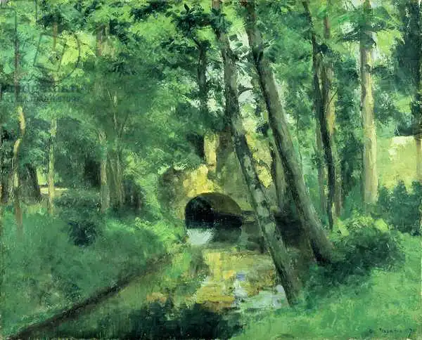 65.5 x 81.5 Pissarro painted picture The Little Bridge, Pontoise in 1875. Prevailing color of this fine art print is green and its shape is landscape. Original size is 65.5 x 81.5. This art piece is located in Kunsthalle Mannheim, Mannheim, Germany. This image is printed on demand - you can choose material, size and finishing.