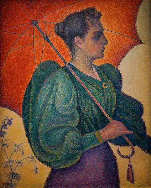 1893 Signac painted picture Lady with umbrella in 1893. Prevailing color of this fine art print is red and its shape is portrait. This image is printed on demand - you can choose material, size and finishing.
