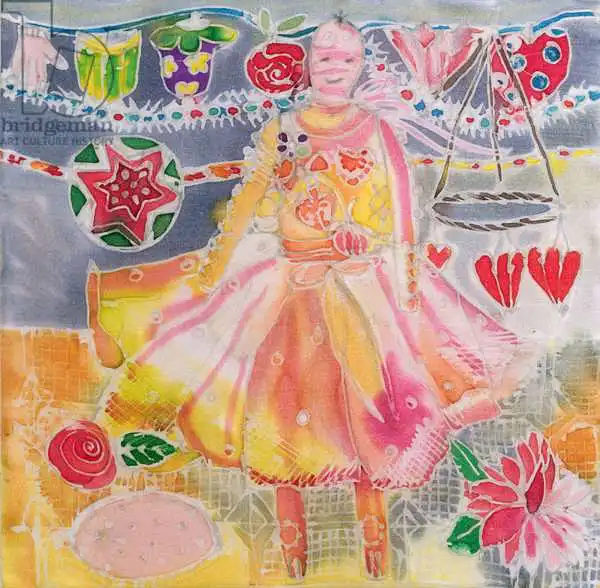 Simon painted picture Fairy with Hearts and Flowers in 2006. Prevailing color of this fine art print is b&W and its shape is square. Original size is 38.4 x 38.4. This art piece is located in a private collection This image is printed on demand - you can choose material, size and finishing.