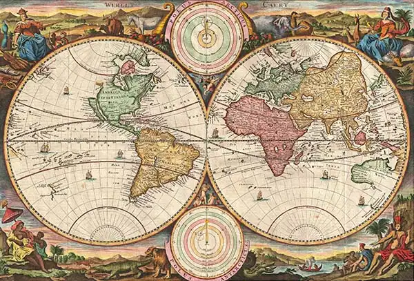 Historical map of both hemispheres, 1730