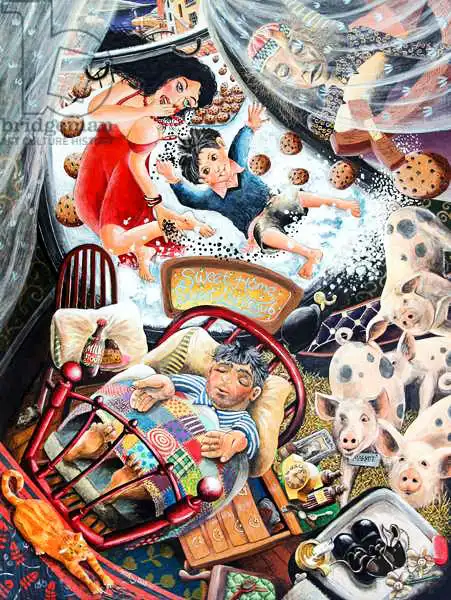 Todd painted picture Evans the Death and Mr Waldo dream their own dreams in 2005. Prevailing color of this fine art print is b&W and its shape is portrait. Original size is 73.8 x 55.3. This art piece is located in a private collection This image is printed on demand - you can choose material, size and finishing.