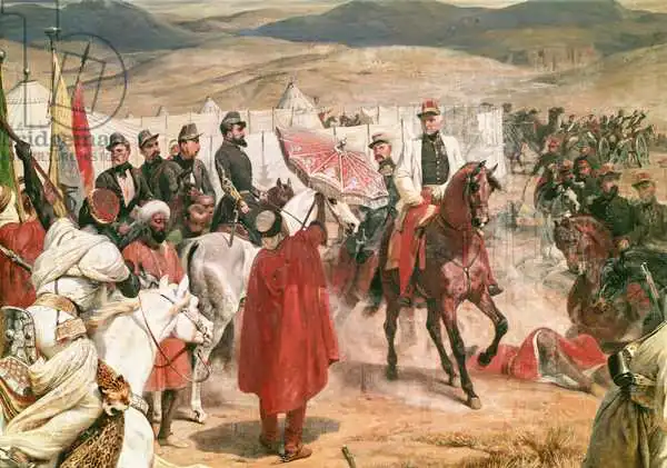 Vernet painted picture Marshal Thomas Bugeaud (1784-1849) and Colonel Joseph Vantini (Yousouf) (1808-66) During the Conquest of Algeria in 1846. Prevailing color of this fine art print is green and its shape is landscape. This art piece is located in ChActeau de Versailles, France. This image is printed on demand - you can choose material, size and finishing.