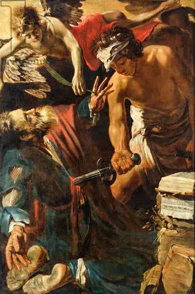 Vignon painted picture The Martyrdom of St. Matthew in 1617. Prevailing color of this fine art print is brown and its shape is portrait. Original size is 142 x 96. This art piece is located in Musee des Beaux-Arts, Arras, France. This image is printed on demand - you can choose material, size and finishing.