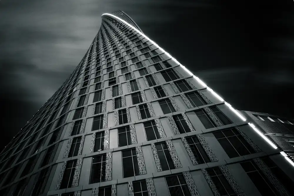#uraban #twist #twisted #building #tower #towers #skyscraper #skyscrapers #city #cityscape #urban #bw #black and white #dark #low key #low-key #architecture #buildings #metropolis #monochrome