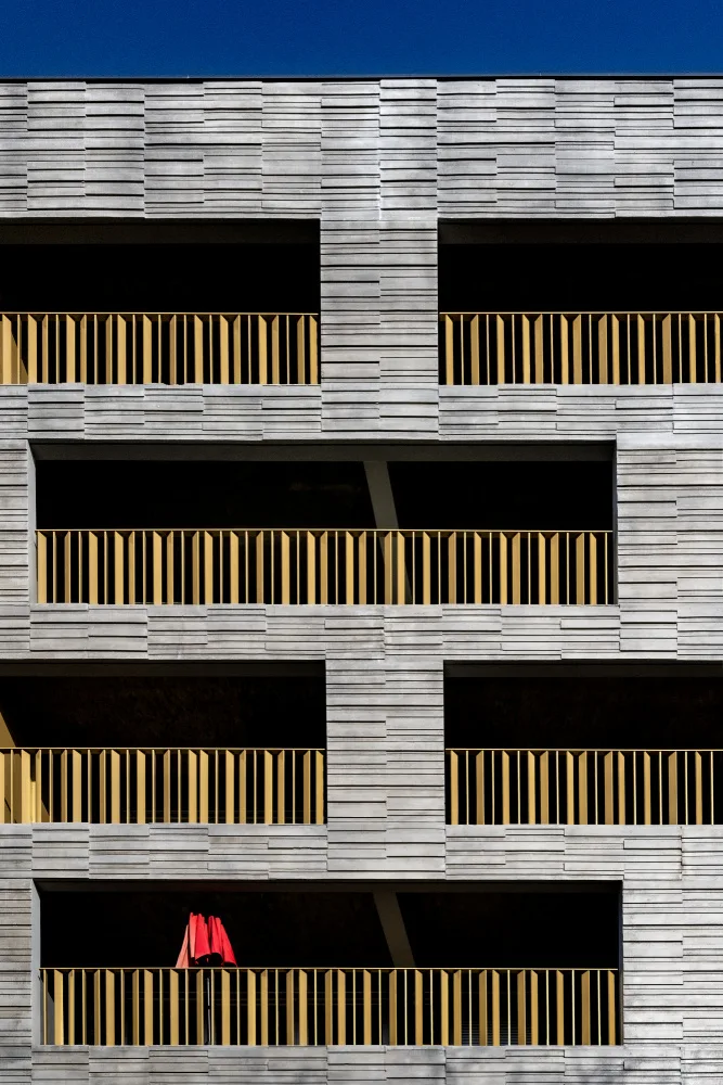 #architecture #exterior #facade #balconies #abstract #lines #pattern #sunshade #red #building #buildings #wall #urban #repetition