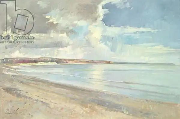 Easton painted picture Reflected Clouds, Oxwich Beach in 2001. Prevailing color of this fine art print is blue and its shape is landscape. Original size is 40.6 x 61. This art piece is located in a private collection This image is printed on demand - you can choose material, size and finishing.