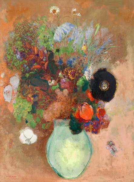 private collection Redon painted picture Flowers in a Green Vase in 1910. Prevailing color of this fine art print is brown and its shape is portrait. This art piece is located in a private collection This image is printed on demand - you can choose material, size and finishing.