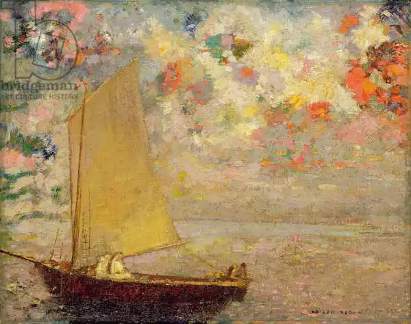 private collection Redon painted picture Sailboat in 1905. Prevailing color of this fine art print is green and its shape is landscape. This art piece is located in a private collection This image is printed on demand - you can choose material, size and finishing.
