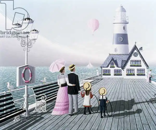 Szumowski painted picture The Lighthouse in 1996. Prevailing color of this fine art print is vivid and its shape is landscape. Original size is 50.8 x 60.9. This art piece is located in a private collection This image is printed on demand - you can choose material, size and finishing.