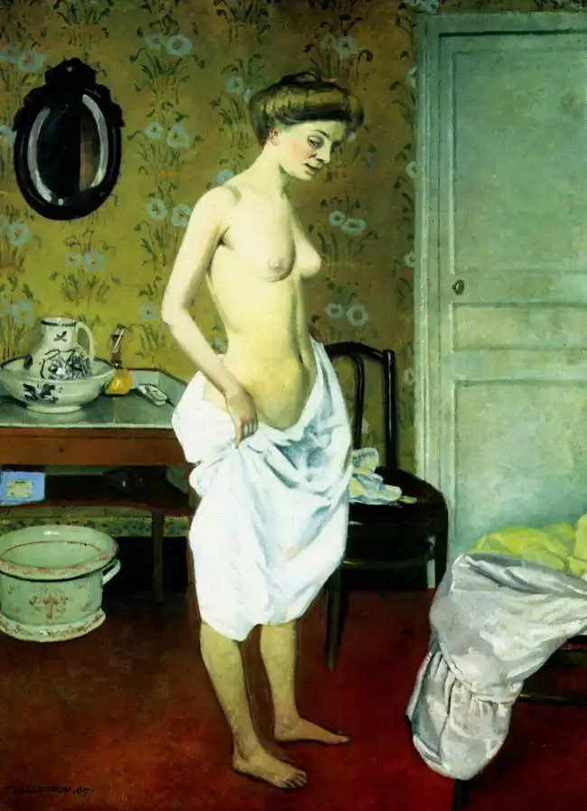Vallotton painted picture Toaleta in 1905. Prevailing color of this fine art print is green and its shape is portrait. This image is printed on demand - you can choose material, size and finishing.
