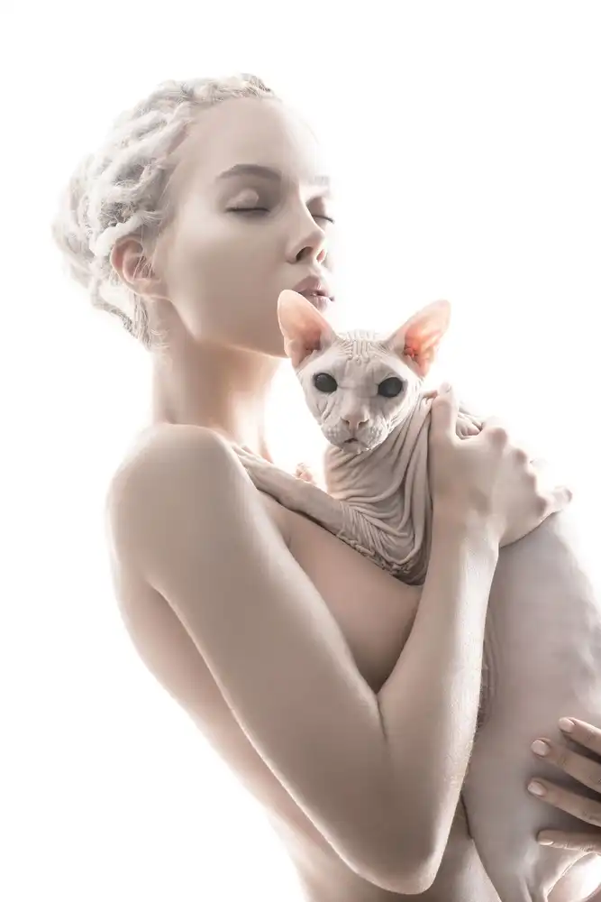 #woman #beauty #cat #nude #skin #fine art nude #naked #closed eyes #mood #emotion #feeling #cats #pet #pets #high key #high-key #girl #model #animal #animals #no background #eyes #ears #fashion #person #people #beautiful #portrait #female #nudes #erotic #sexy #sensual #sensuality #figurative #plain background