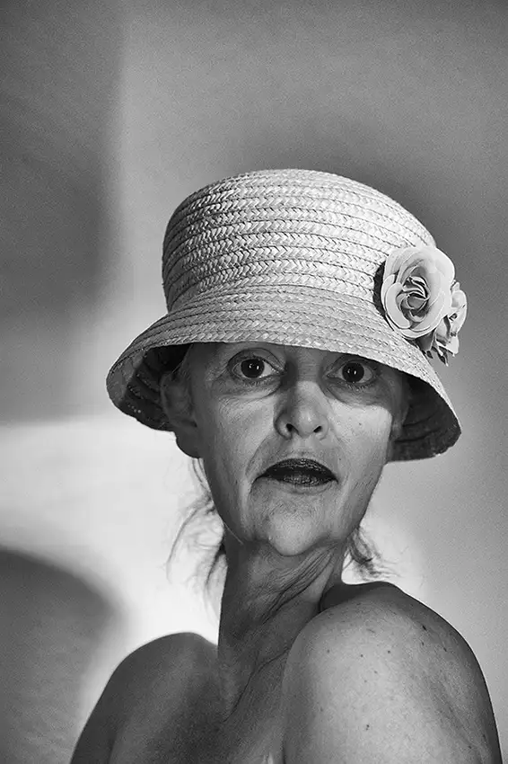 #portrait #blak7white #old lady #skin #shoulder #freckles #black and white #hat #flower #eyes #light #shadow #person #figurative #people #flowers #flora #floral #botanical #flowers and plants #botanicals #shadows