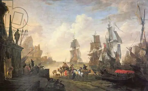 Minderhout painted picture View of a Port in the Levant in 1670. Prevailing color of this fine art print is dark and its shape is long. This art piece is located in Musee de lHotel Sandelin, Saint-Omer, France. This image is printed on demand - you can choose material, size and finishing.
