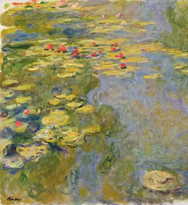 Monet painted picture Pond with water lilies in 20th century. Prevailing color of this fine art print is vivid and its shape is square. Original size is 130 x 120. This art piece is located in Musee Marmottan Monet, Paříž, Francie. This image is printed on demand - you can choose material, size and finishing.