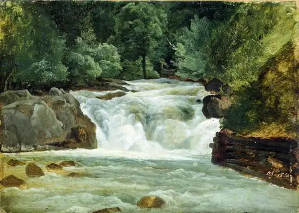 Morgenstern painted picture A Waterfall in Upper Bavaria in 1830. Prevailing color of this fine art print is green and its shape is landscape. Original size is 23.8 x 33.5. This art piece is located in Hamburger Kunsthalle, Hamburg, Germany. This image is printed on demand - you can choose material, size and finishing.