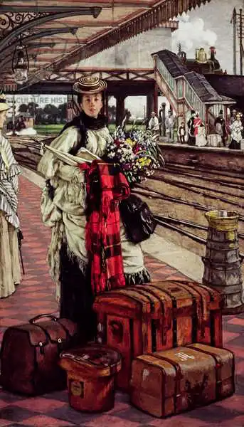 Dunedin Art Gallery, New Zealand Tissot painted picture Waiting at the Station, Willesden Junction in 1874. Prevailing color of this fine art print is brown and its shape is portrait. This art piece is located in Dunedin Art Gallery, New Zealand. This image is printed on demand - you can choose material, size and finishing.