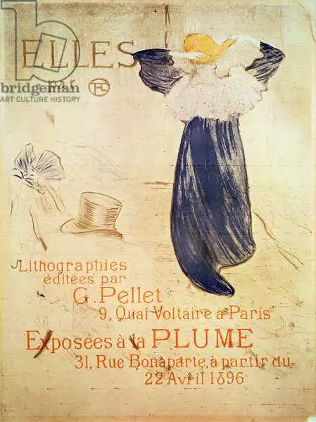 Musee Toulouse-Lautrec, Albi, France Toulouse-Lautrec painted picture Elles' frontispiece for the 1896 exhibition at La Plume, 31 rue Bonaparte, Paris from 22nd April. Editions G Pellet, 9 quai Voltaire, Paris, 1896 (Crayon, brush, and spatter lithograph printed in in 1896. Prevailing color of this fine art print is orange and its shape is portrait. This art piece is located in Musee Toulouse-Lautrec, Albi, France. This image is printed on demand - you can choose material, size and finishing.